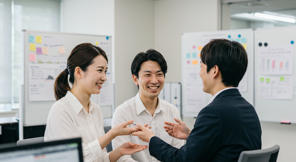 ピアレコグニション(同僚間承認)の文化を作ることは、ストロークが組織全体で循環する環境を生み出します。上司からの承認だけでなく、同僚同士で認め合う文化があれば、ストロークの総量が飛躍的に増加します。