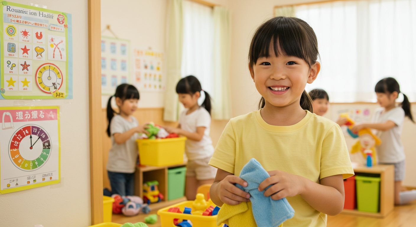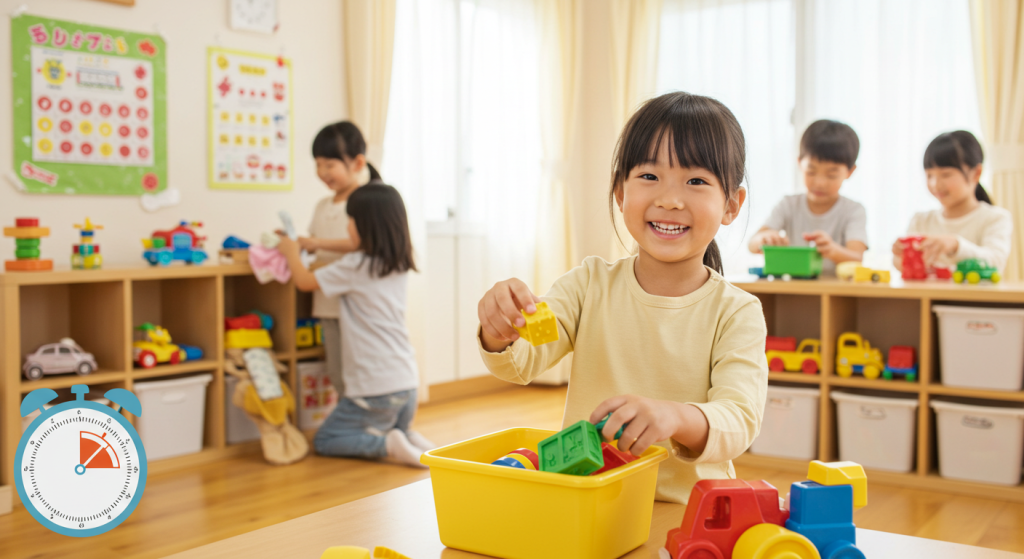 一方、時間に余裕のある家庭ではより丁寧で教育的なアプローチを採用しています。片付けのプロセスを学習機会として活用し、色や形による分類、数の概念、物の特性などを教える機会として位置づけました。このように各家庭の価値観とリソースに応じた方法を選択することで、持続可能で効果的な習慣形成が可能になります。