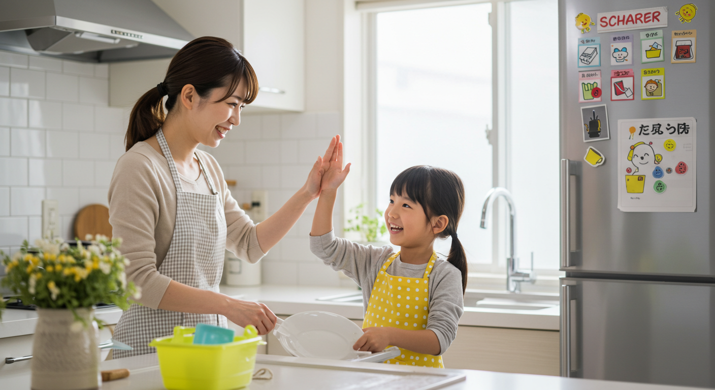 また、お手伝いを楽しいものにする工夫も大切です。音楽をかけながら掃除をする、兄弟で競争する、お手伝いチャートやスタンプカードを使って視覚的に達成感を味わえるようにするなど、子どもが楽しみながら取り組める環境を作りましょう。ただし、物質的な報酬に頼りすぎると、報酬がないとやらなくなる可能性があるため、あくまで楽しさや達成感を重視することが重要です。