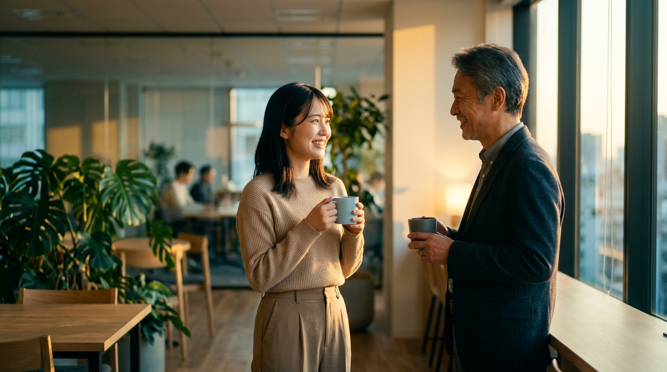 朝の挨拶の際にひと言加える、エレベーターで一緒になったときに話しかける、給湯室やコーヒーコーナーで顔を合わせたときに一言声をかけるなど、日常の中にある小さな接触機会を活用しましょう。雑談が苦手な場合は、事前にいくつか話題を用意しておくと安心です。「今朝のニュースで〇〇って言っていましたね」「最近寒くなりましたね」など、相手に同意を求めるような軽い話題から始めると会話のハードルが下がります。